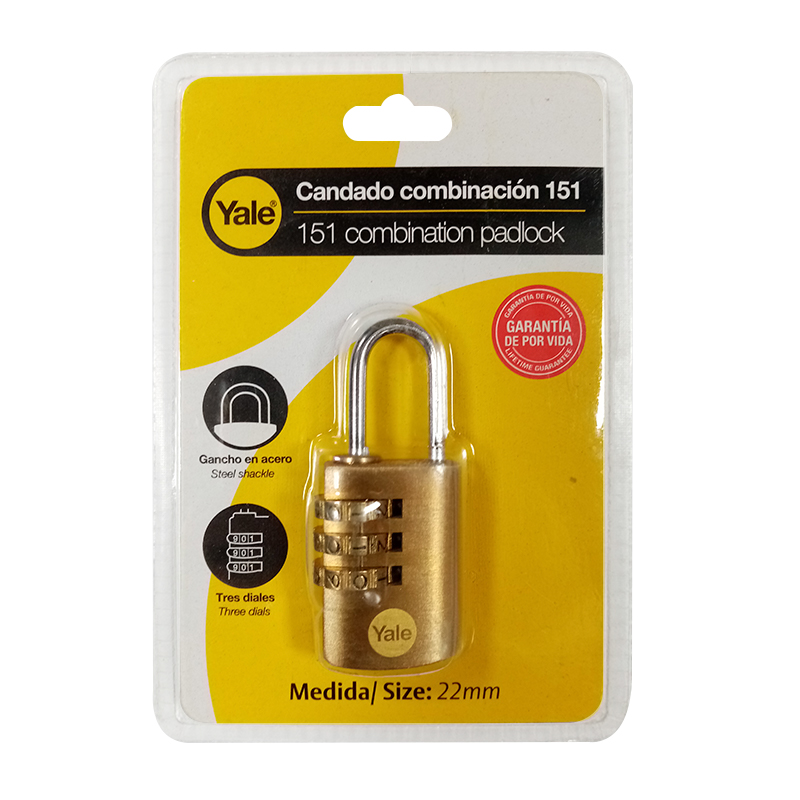 CANDADO SERIE 151 CON COMBINACION 22MM, GANCHO EN ACERO