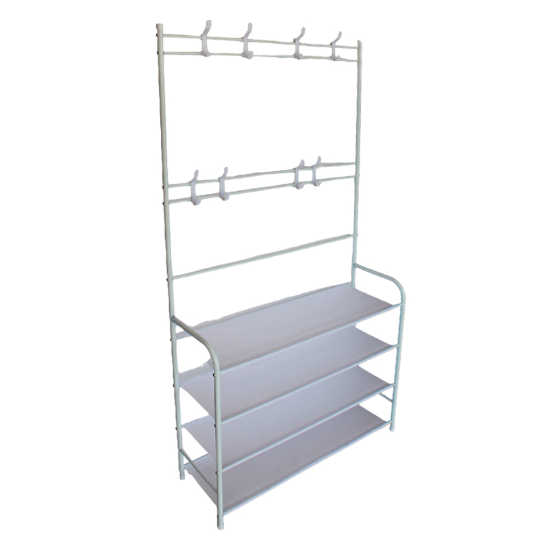 MUEBLE ZAPATERA METALICA BLANCA 4 REPISAS Y BASE CON 8 GANCHOS P.COLGAR 24"X10"X60" (60X26X153CM)
