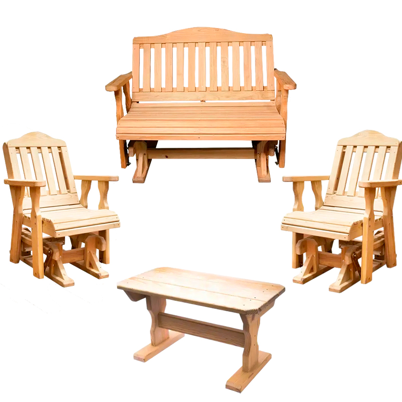 JGO SILLA MECEDORA INGLESA PINO CURADO 4 PCS, SILLA DOBLE 51"LX45"ANX39"AL SILLA 35"LX28"ANX40"AL