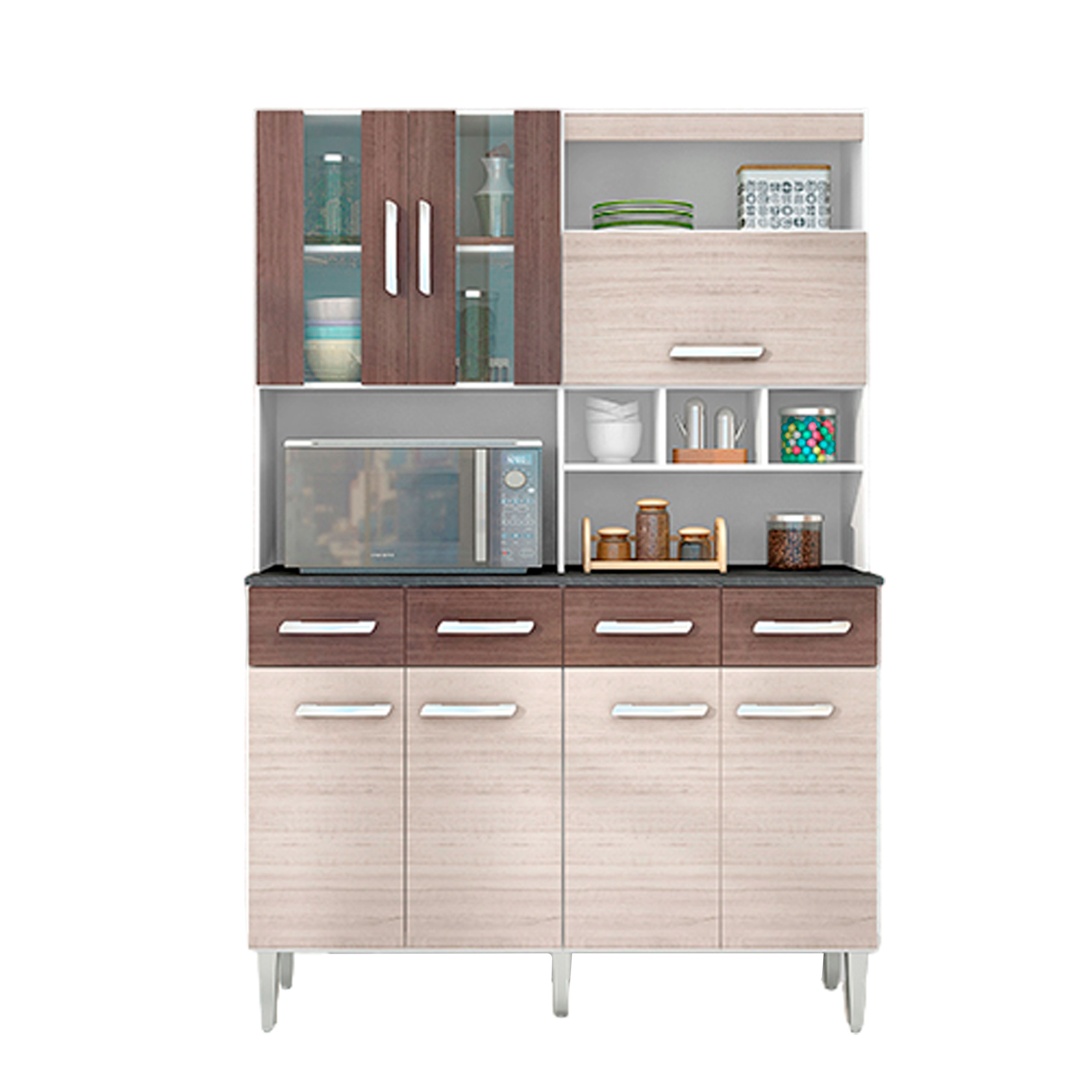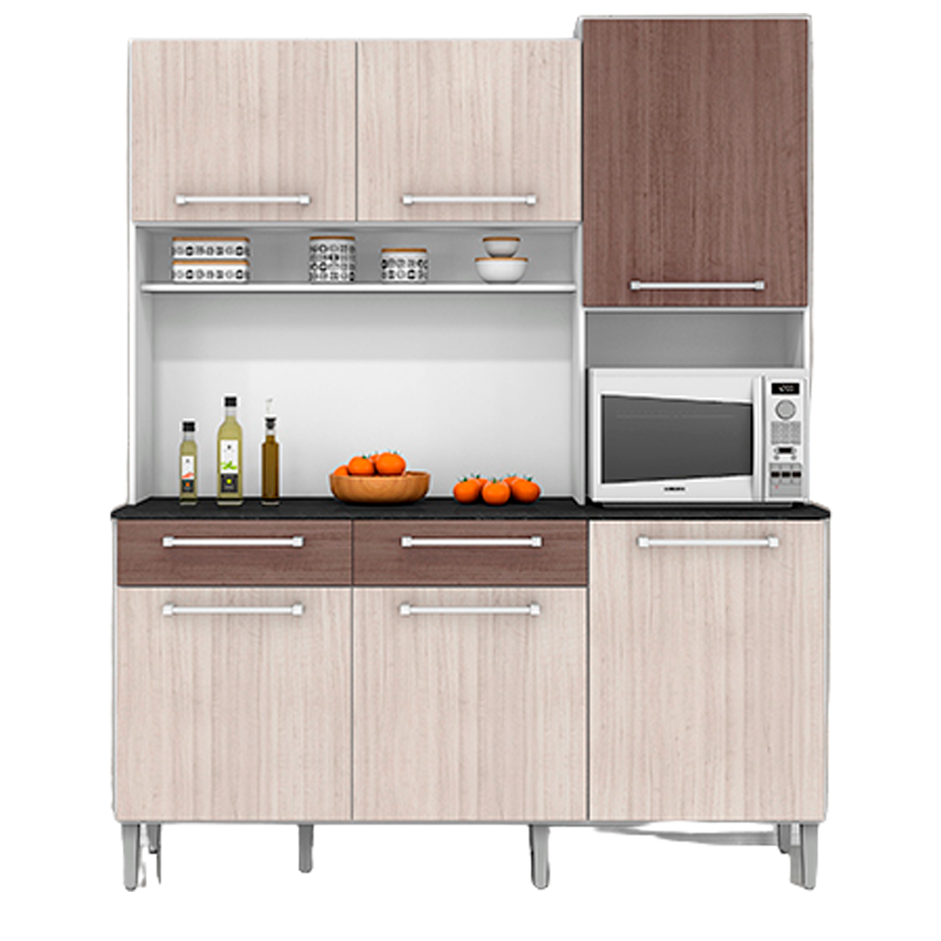 MUEBLE COCINA/MICRO FORNO ALINE ALMENDRA/CAPUCHINO 6 COMPUERTAS +2 GAVETAS 120CM/ANCHO X 174CM/LARGO