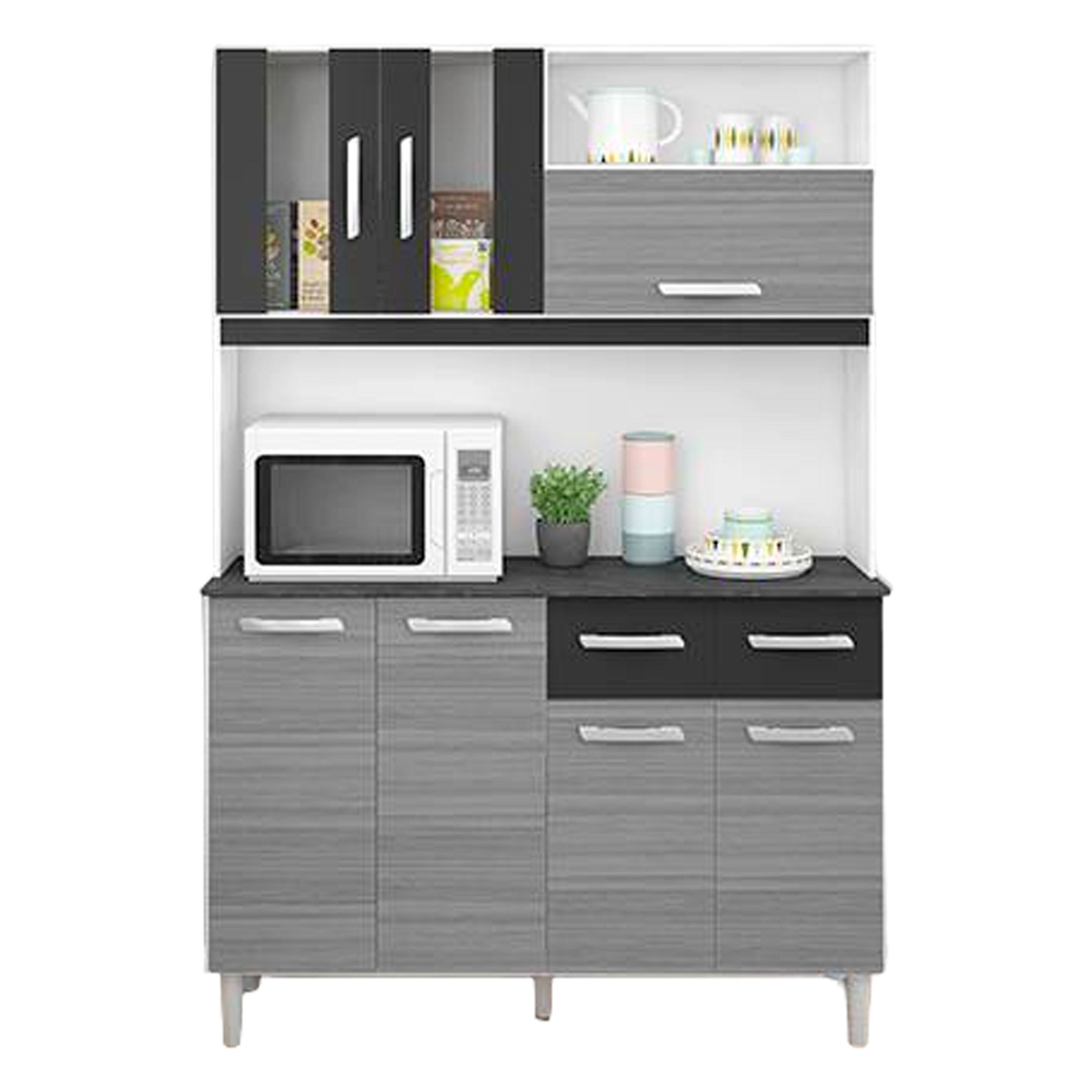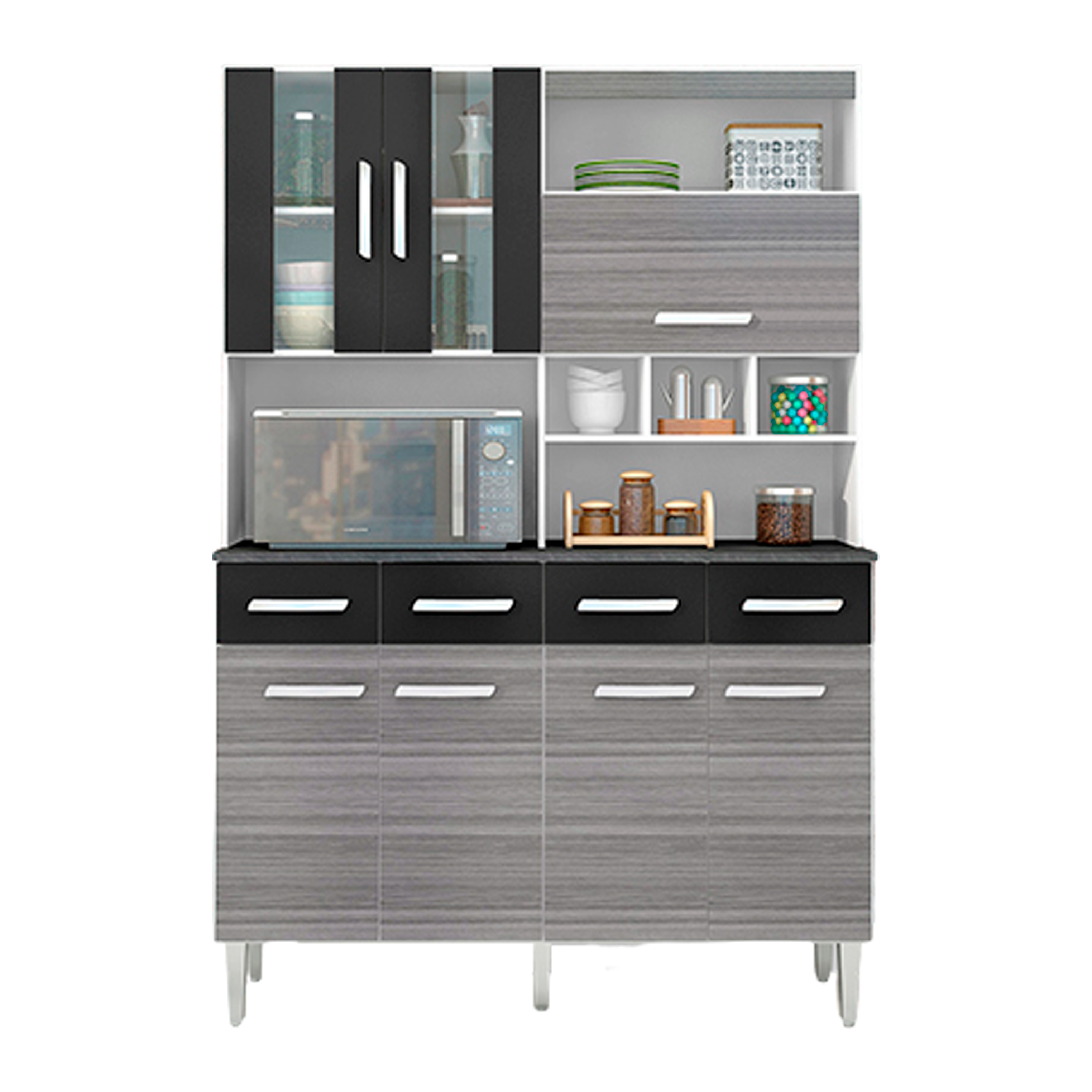 MUEBLE COCINA/MICRO FORNO ALINE GRIS/NEGRO 6 COMPUERTAS +2 GAVETAS 120CM/ANCHO X 174CM/LARGO