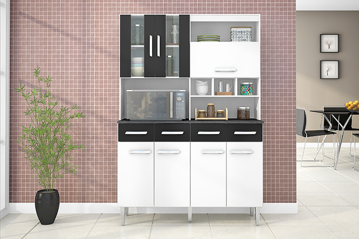 MUEBLE COCINA MELISSA BLANCO/NEGRO 7 COMPUERTAS + 4 GAVETAS 120CM/ANCHO X 178CM/ALTO
