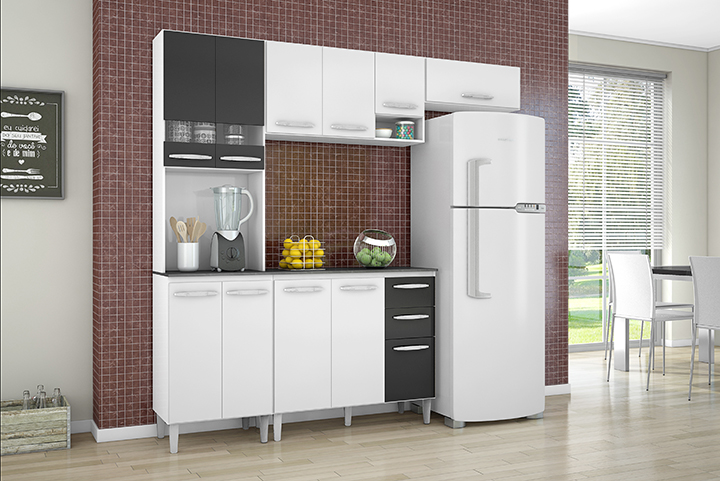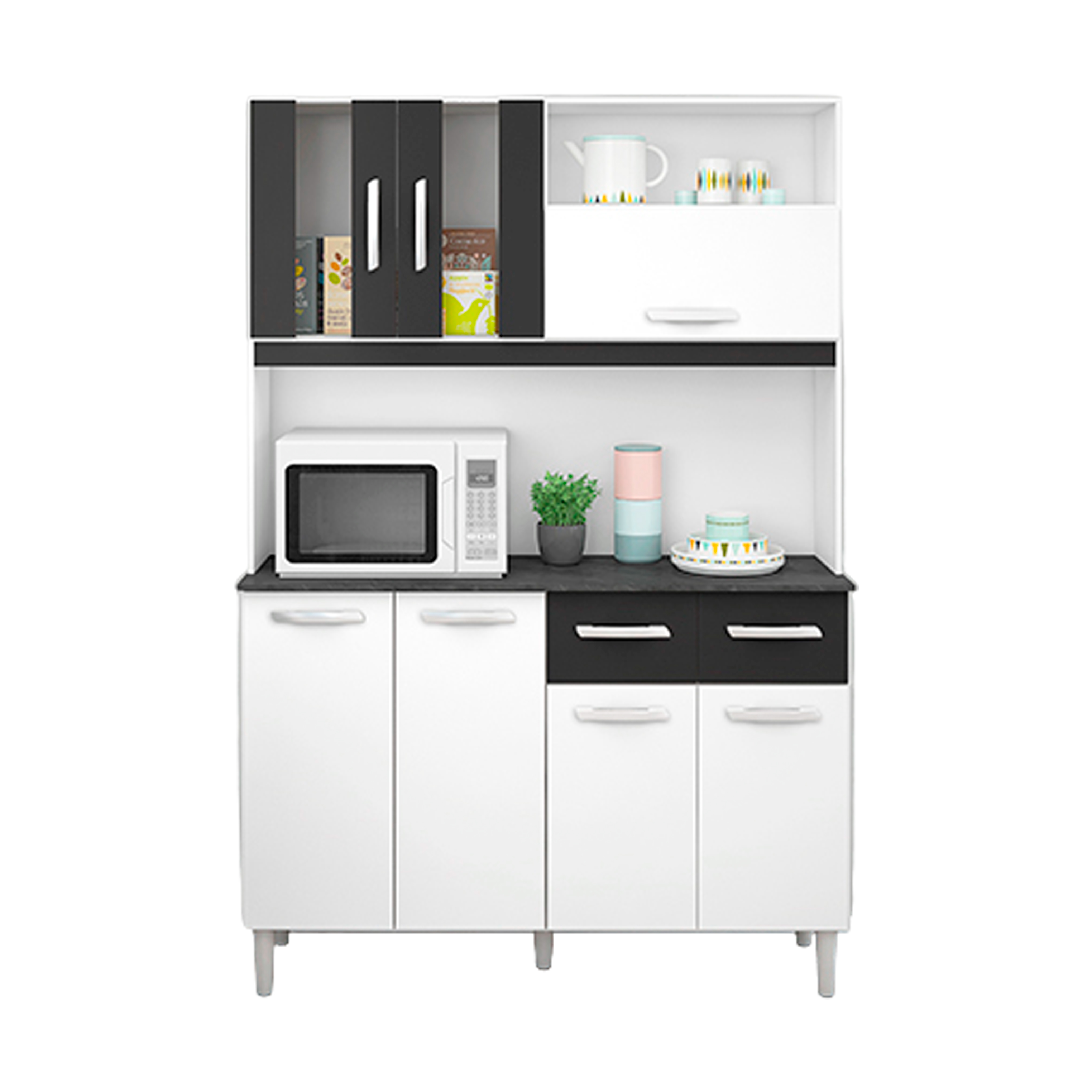 MUEBLE COCINA MANU6 BLANCO/NEGRO 6 COMPUERTAS + 2 GAVETAS
