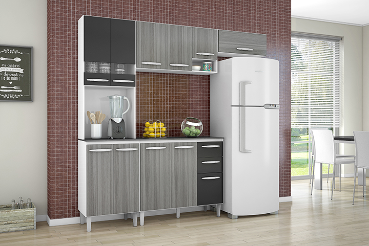 MUEBLE COCINA VALERIA GRIS/NEGRO 6 COMPUERTAS +2 GAVETAS 160CM/ANCHO X 200CM/LARGO