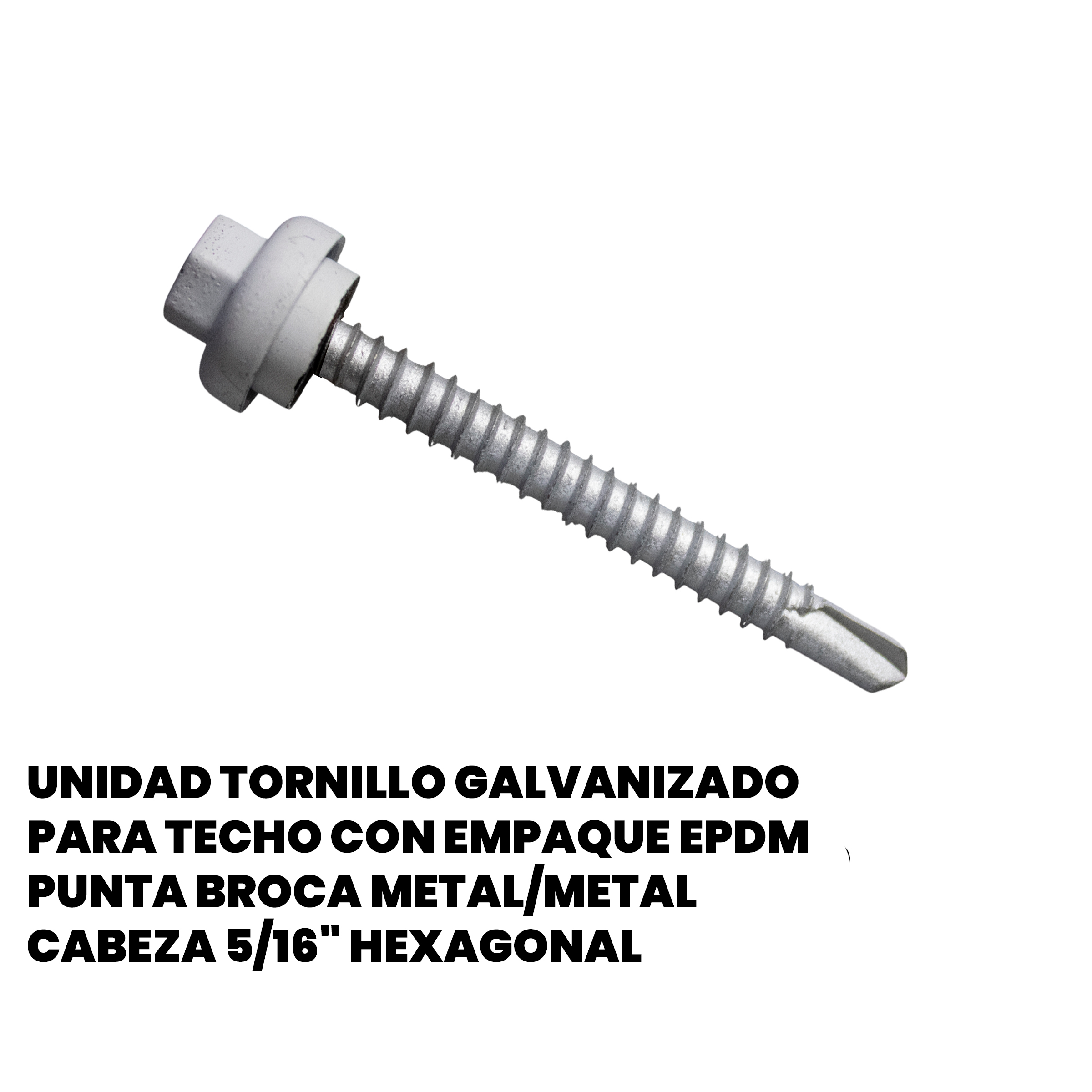 UNIDAD TORNILLO GALVANIZADO PARA TECHO CON EMPAQUE EPDM PUNTA BROCA METAL/METAL CABEZA 5/16" HEXAGON