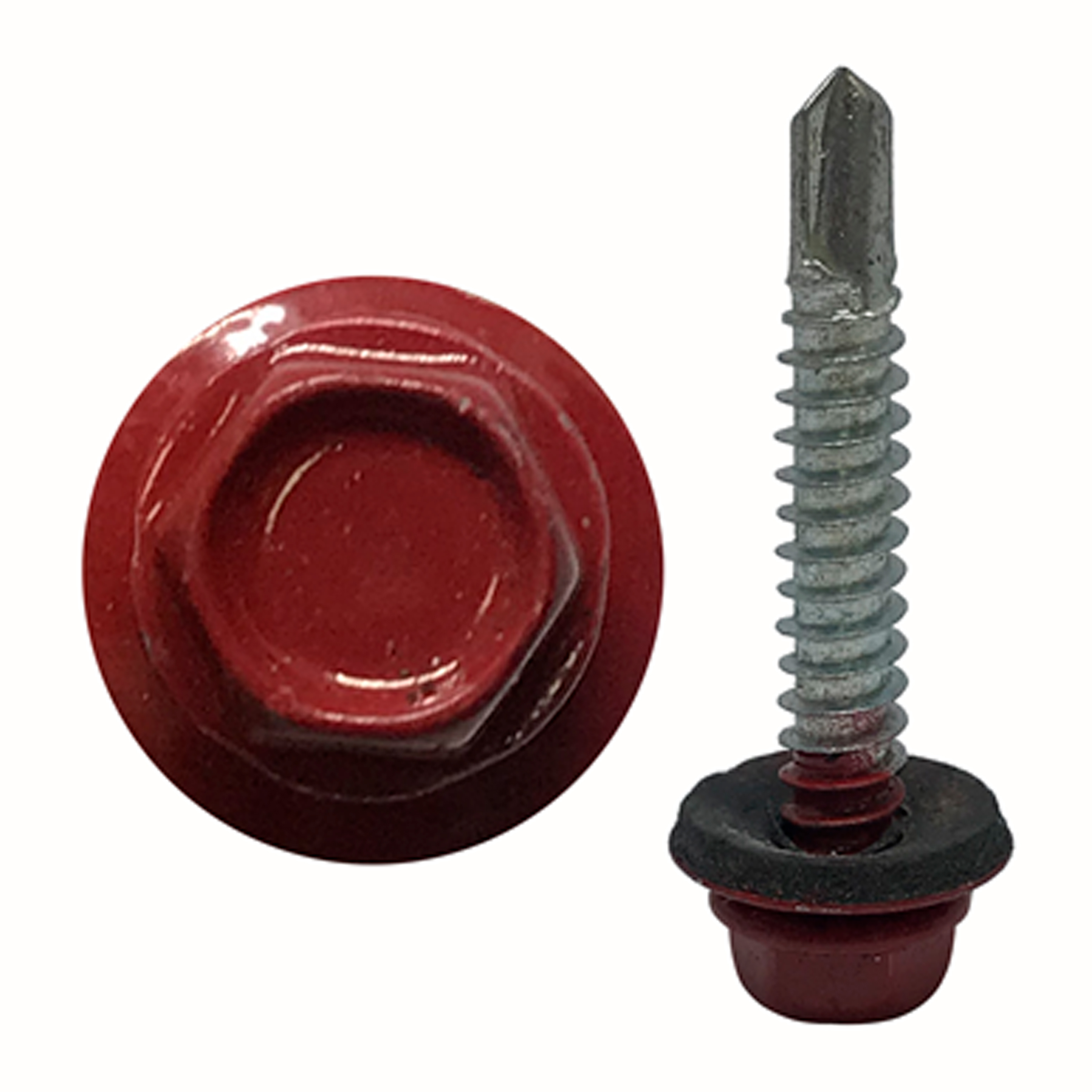 TORNILLO 14-14X1-1/2 TECHO PUNTA BROCA C/ ARANDELA Y NEOPRENO ROJO GALVANIZADO