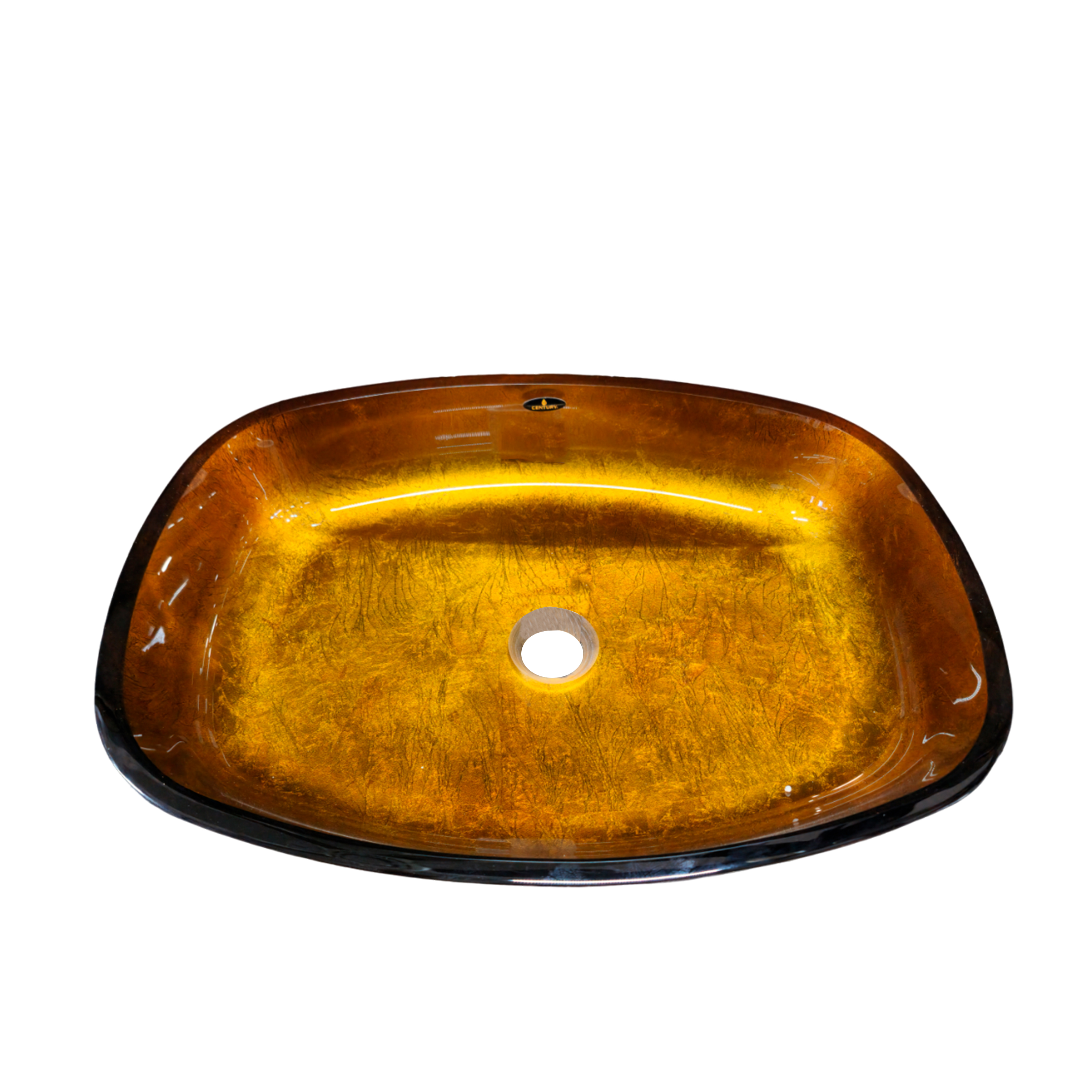 LAVAMANOS DE VIDRIO CENTURY RECTANGULAR DE SOBREPONER 540X395X110X12 DORADO BRILLANTE