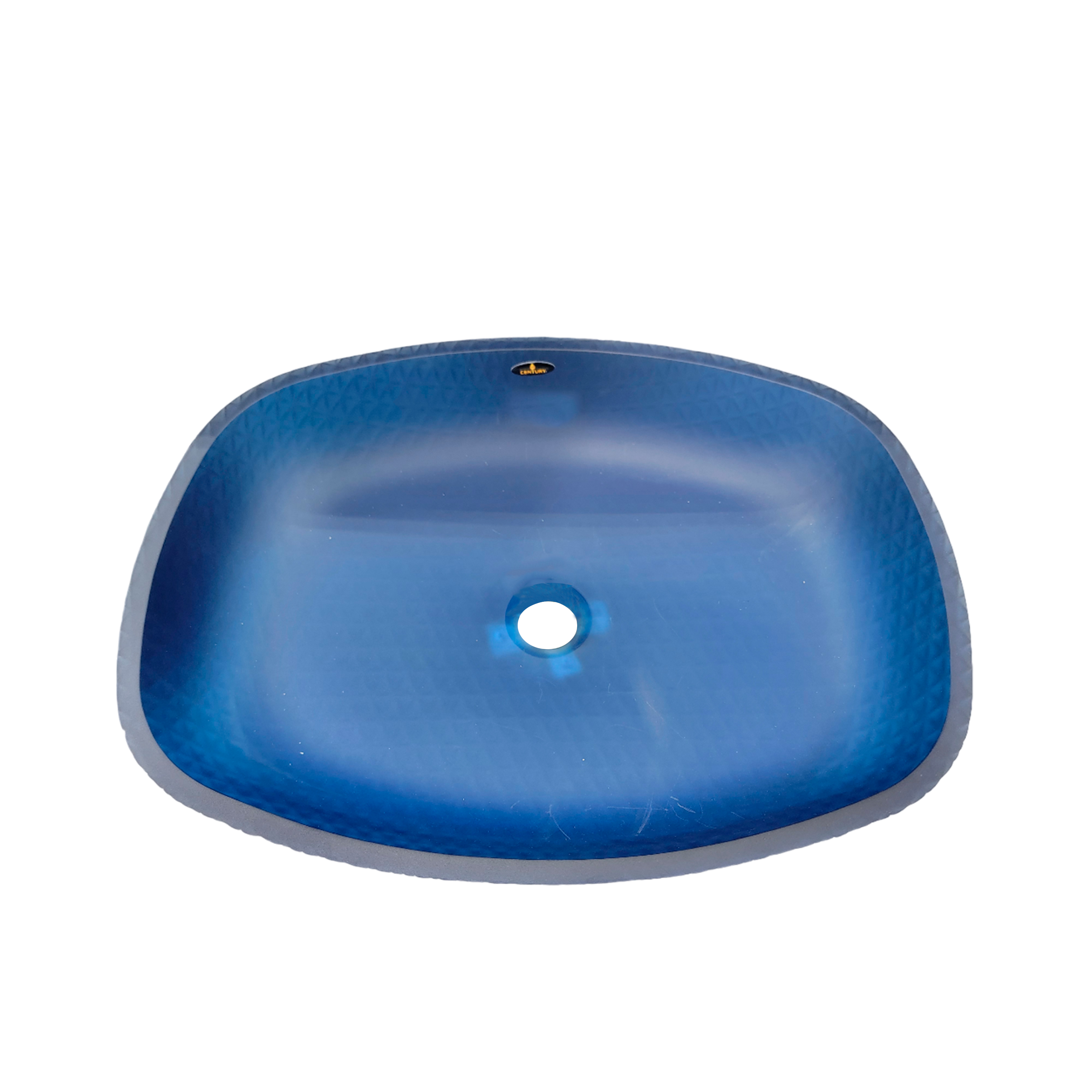 LAVAMANOS DE VIDRIO CENTURY RECTANGULAR DE SOBREPONER 540X395X110X12 AZUL