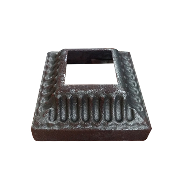 BASE CUADRADA DECORAT.DE HIERRO PARA VERJA 2 3/8X2 3/8"X1MM/ALTO, AGUJERO 1"