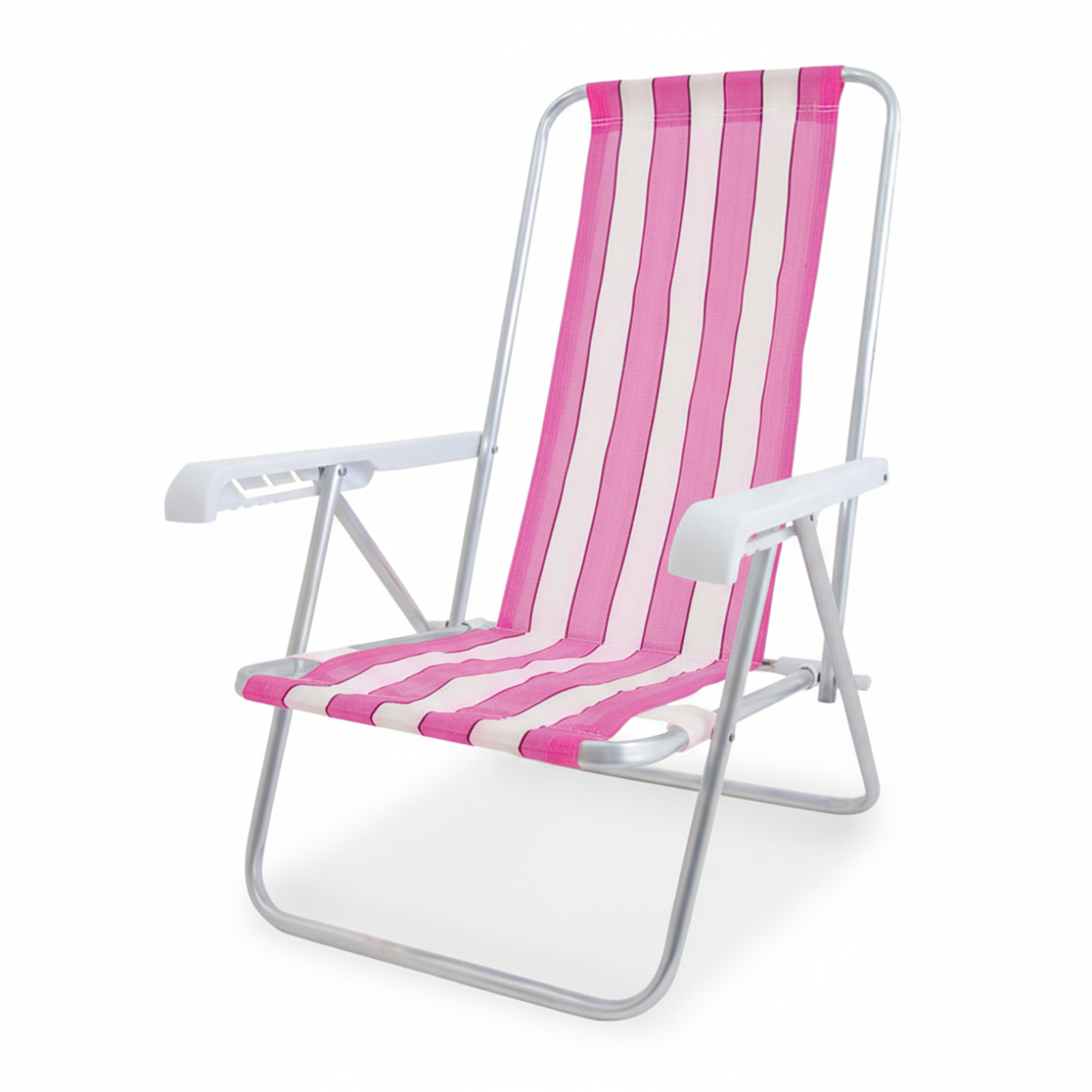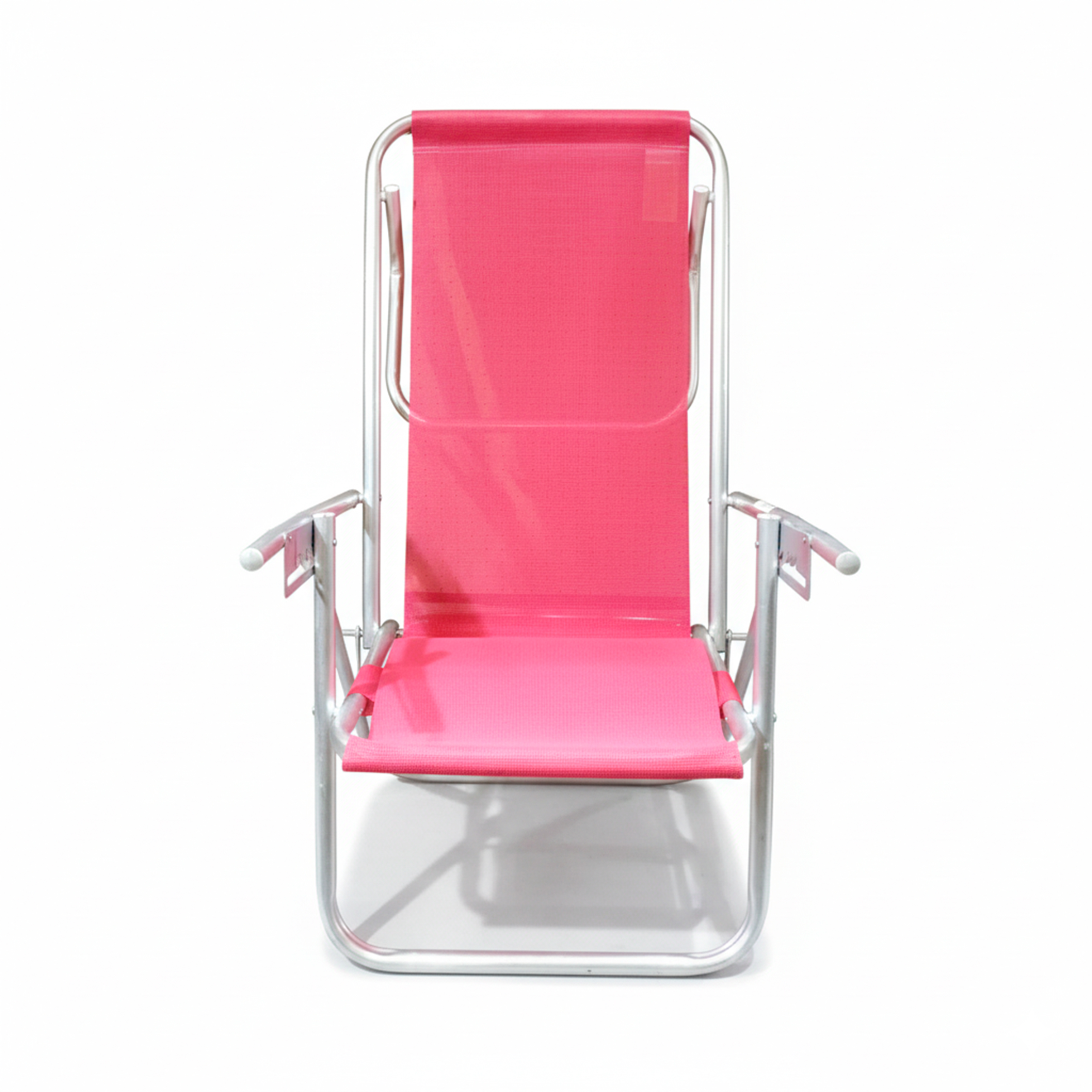 SILLA DE PLAYA ALUMINIO 5 POSICIONESXL CON SOPORTE ROSADA 130KGS/CAPACIDAD