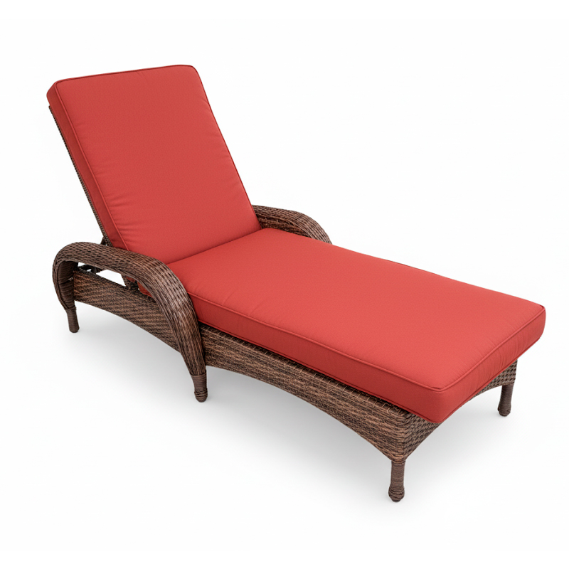 SILLA ASOLAEDORA D/MIMBRE ROJA RECLINABLE ACOLCHONADA CON COJIN -COBERTOR P/EXTERIOR, HAMPTON BAY.