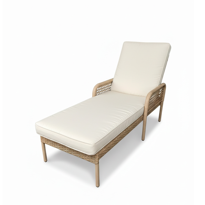 SILLA ASOLEADORA D/MIMBRE BEIGE RECLINABLE ACOLCHONADA RECON COJIN -COBERTOR,HAMPTON BAY.