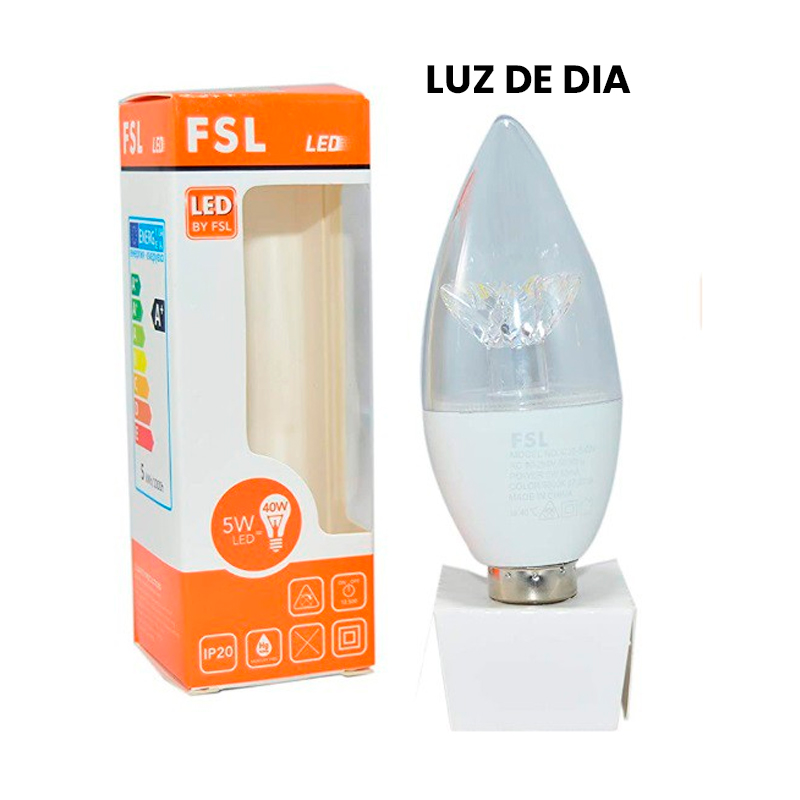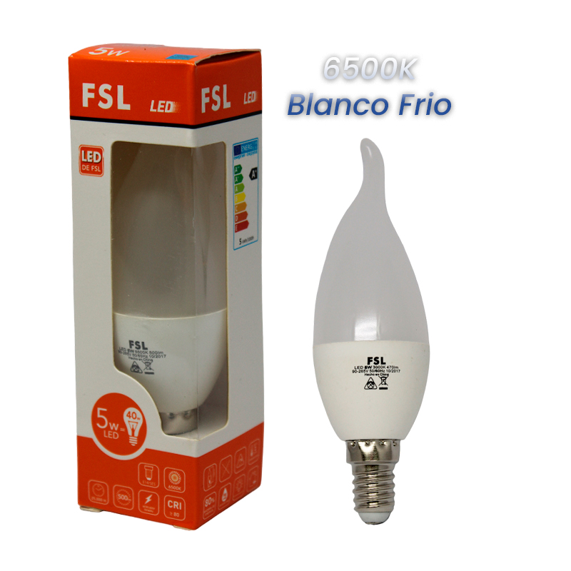 BOMBILLO LED 5W TIPO CANDELA LUZ DE DIA E14/BT38/6500K