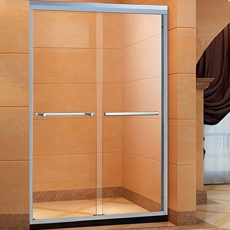 PUERTA PARA BAÑO 1.9MT VIDRIO TEMPLADO CLARO 10MM UNO MOVIBLE Y UNO FIJO ACCESORIOS INOX.CEPILLADO