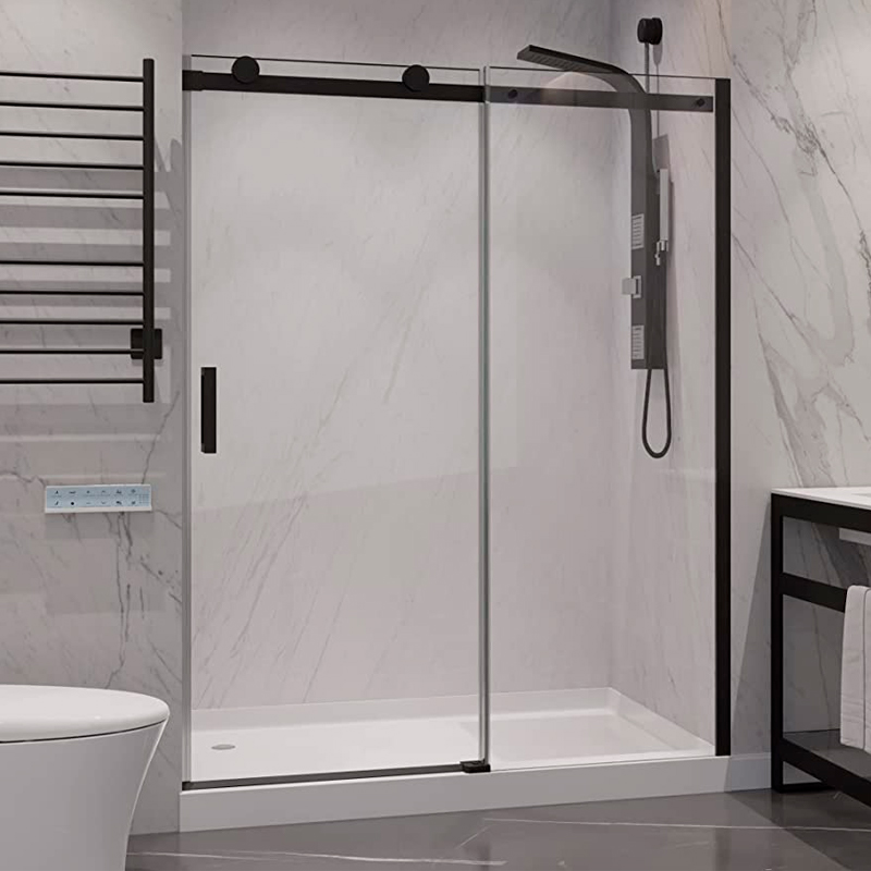 PUERTA PARA BAÑO 1.9MT VIDRIO TEMPLADO CLARO 10MM UNO MOVIBLE Y UNO FIJO ACCESORIOS INOX.NEGRO