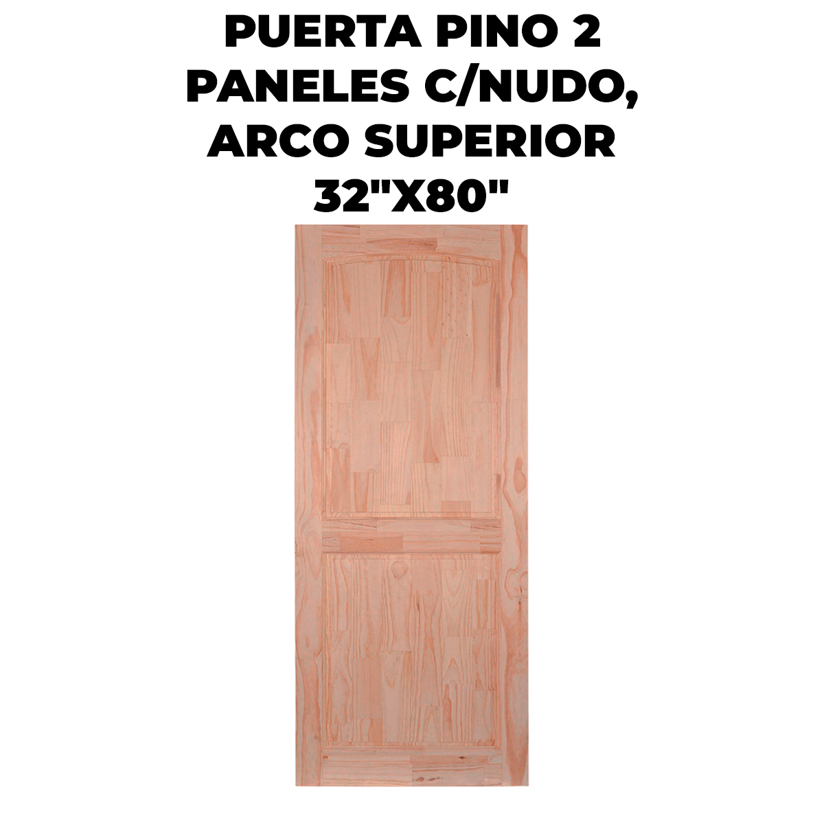 PUERTA MADERA DE PINO 2 PANELES C/NUDO, ARCO SUPERIOR 32"X80"