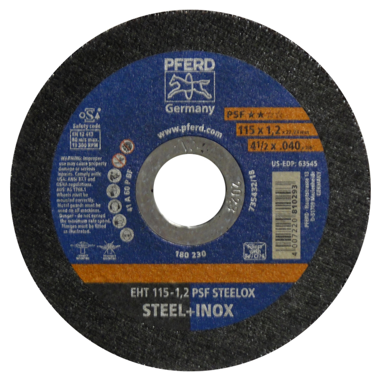 DISCO DE CORTE 4 1/2"X1.2MMX7/8" RECTA EHT ACERO INOXIDABLE PSF STEELOX