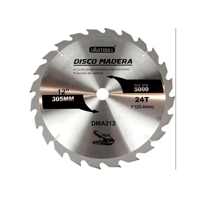 DISCO P/CORTE MADERA 12"X1" 24 DIENTES DE CARBURO, 5000RPM, MARCA UYUSTOOLS