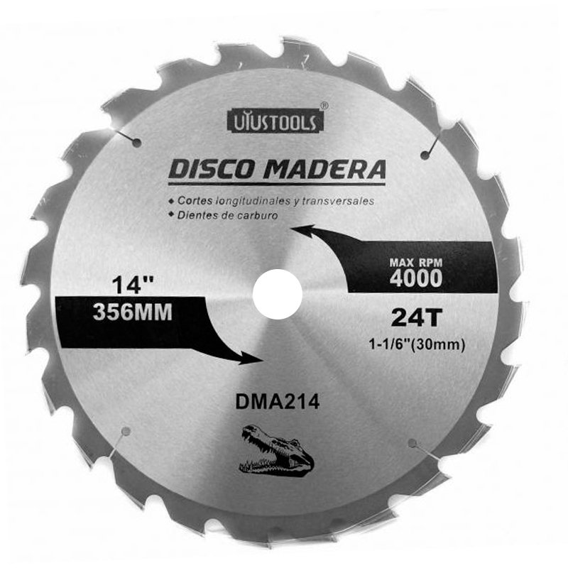 DISCO CORTE MADERA 14X1 1/16" 24 DIENTES DE CARBURO, 4000RPM, MARCA UYUSTOOLS