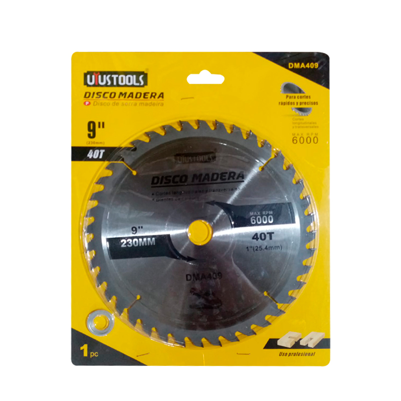 DISCO P/CORTE MADERA 9X1" 40 DIENTES DE CARBURO, 6000RPM, MARCA UYUSTOOLS