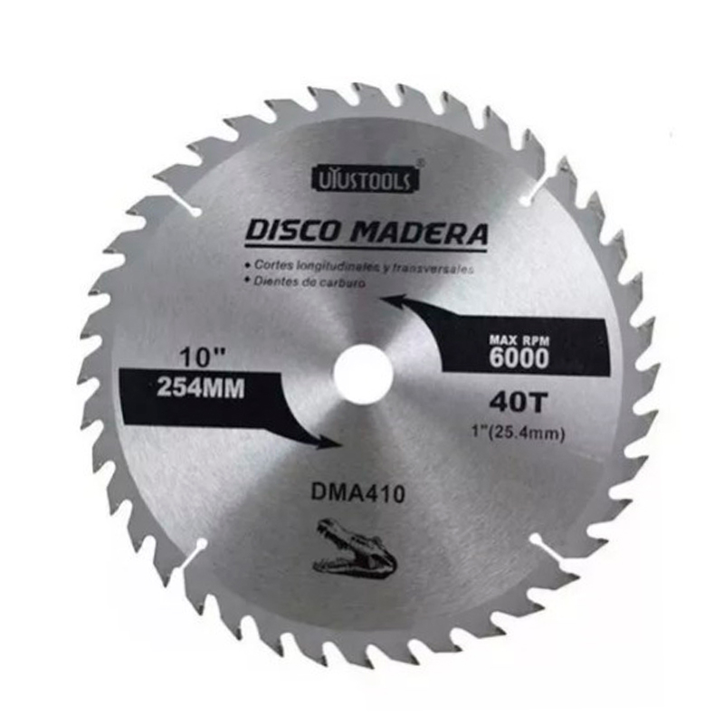 DISCO P/CORTE MADERA 10X1" 60 DIENTES DE CARBURO, 6000RPM MARCA UYUSTOOLS