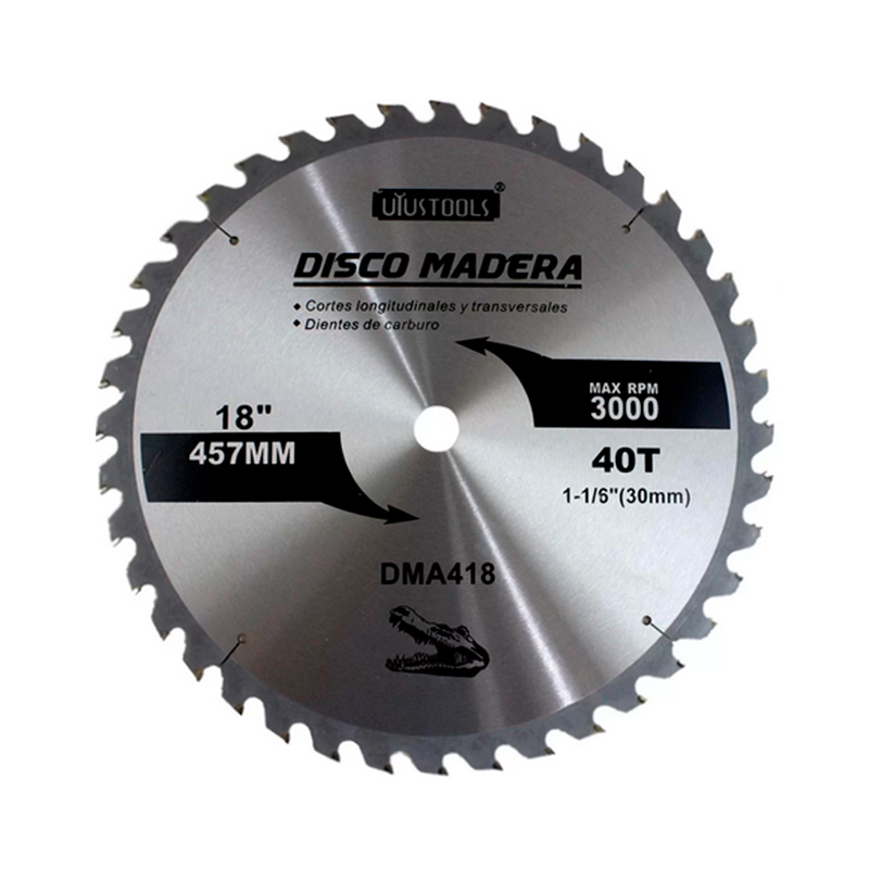 DISCO CORTE MADERA 18X1 1/16" 40 DIENTES DE CARBURO 3000RPM MARCA UYUSTOOLS