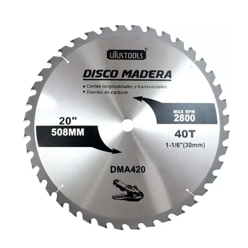 DISCO CORTE MADERA 20X1 1/16" 40 DIENTES DE CARBURO 2800RPM MARCA UYUSTOOLS