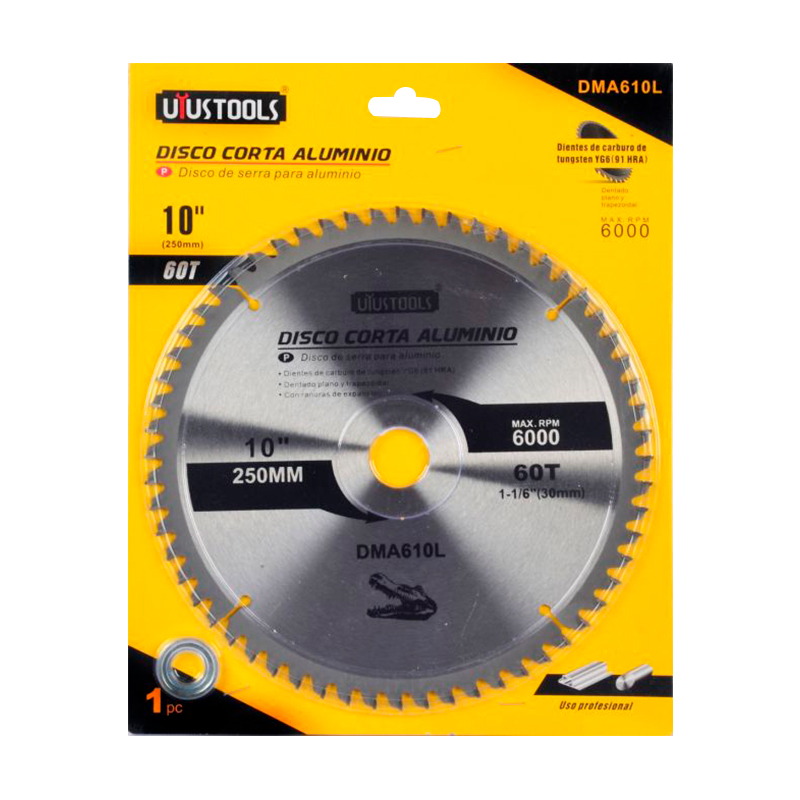 DISCO P/CORTE ALUM.10X1 1/16" 60 DIENTES DE CARBURO DE TUNGSTENO MARCA UYUSTOOLS