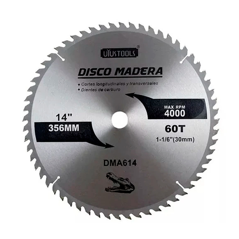 DISCO P/CORTE MADERA 14X1 1/16" 60 DIENTES DE CARBURO, 4000RPM MARCA UYUSTOOLS