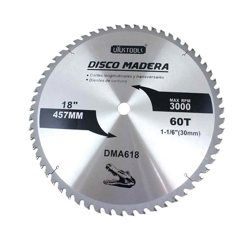 DISCO P/CORTE MADERA 18X1 1/16" 60 DIENTES DE CARBURO, 3000RPM MARCA UYUSTOOLS