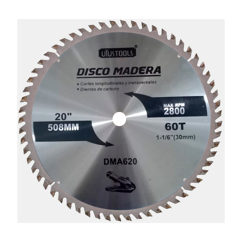 DISCO P/CORTE MADERA 20X1 1/16" 60 DIENTES DE CARBURO, 2800RPM MARCA UYUSTOOLS