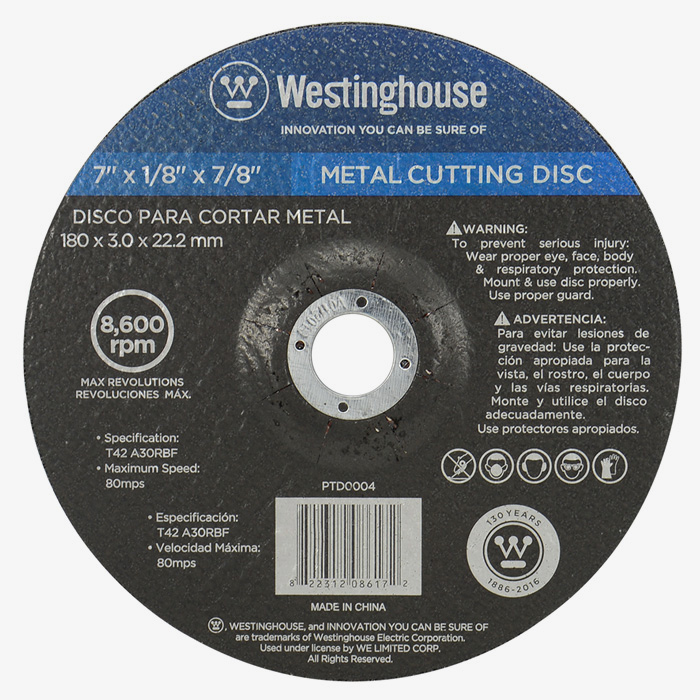 DISCO PLANO PARA CORTAR METAL 7" X 1/8" X 7/8"
