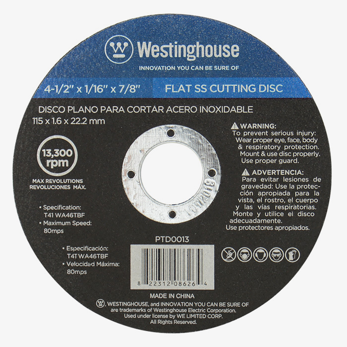 DISCO PLANO PARA CORTAR ACERO INOX 4-1/2" X 1/16" X 7/8"