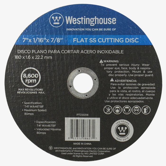DISCO PLANO PARA CORTAR ACERO INOX 7"X1/16"X7/8"