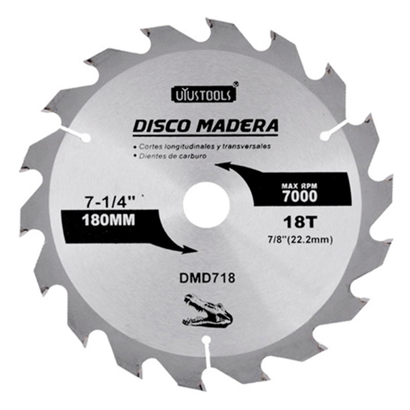 DISCO P/CORTE MADERA 7 1/4X7/8" 18 DIENTES DE CARBURO, 7000RPM, MARCA UYUSTOOLS