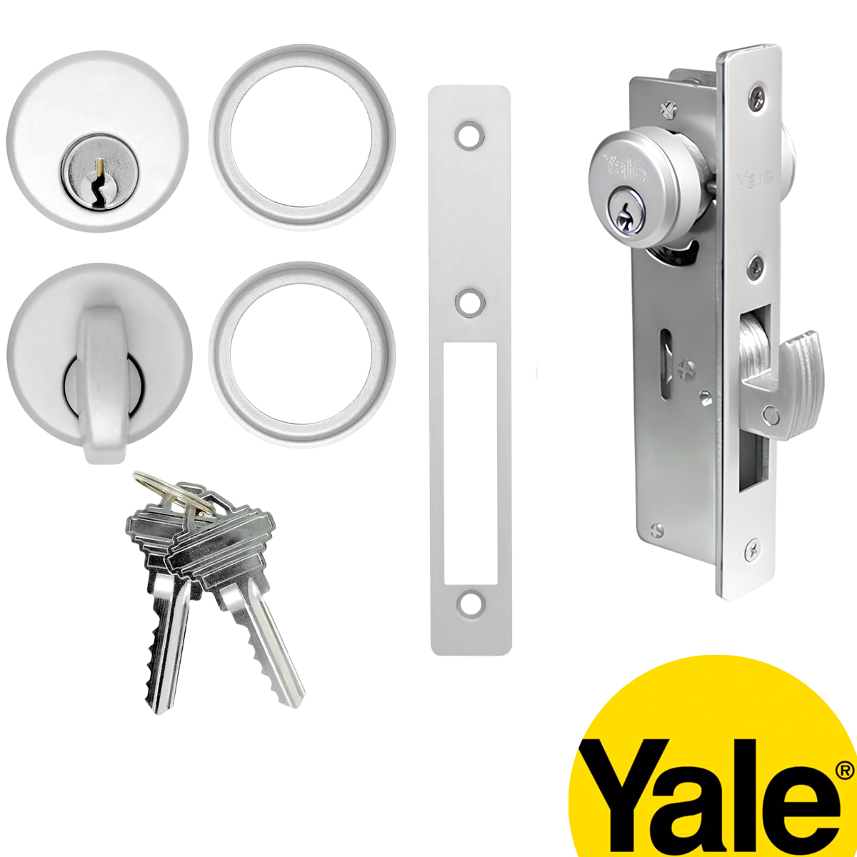 CERRADURA P/PUERTA ALUMINIO C/GANCHO Y CILINDRO DOBLE