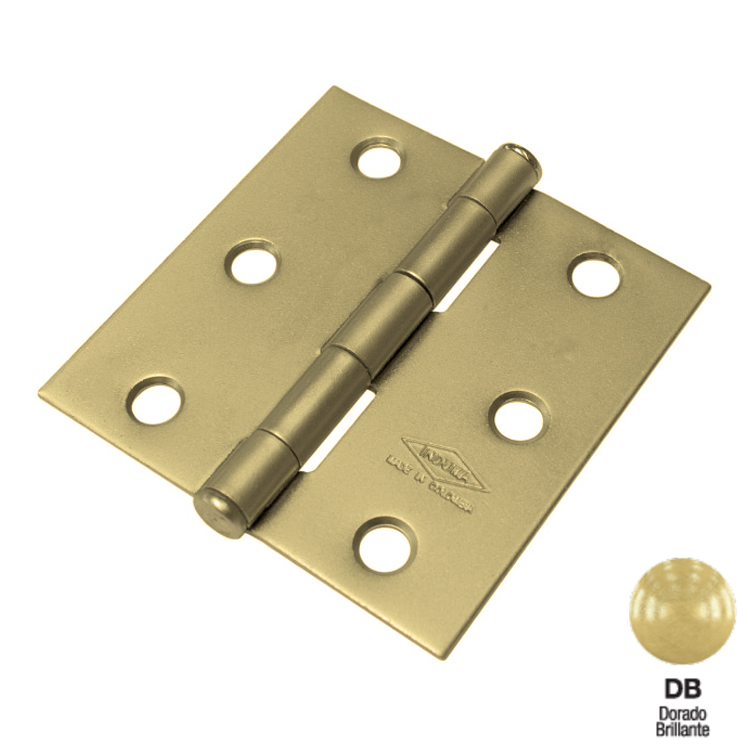 PAR BISAGRA NUDO CABEZA PLANA 2"X2" DORADO BRILLANTE CAL.16 C/TORNILLOS