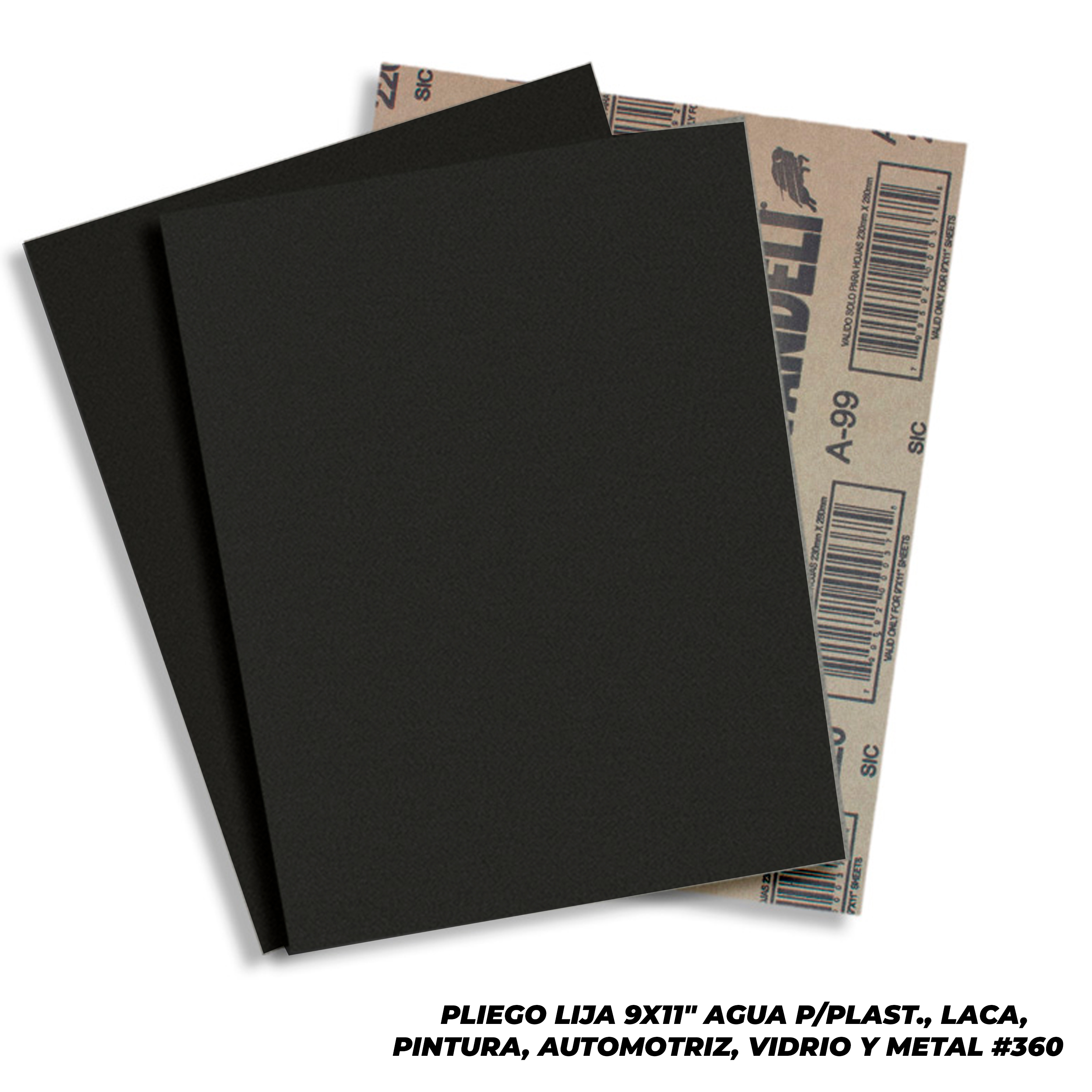 PLIEGO LIJA 9X11" AGUA P/PLAST., LACA, PINTURA, AUTOMOTRIZ, VIDRIO Y METAL #360