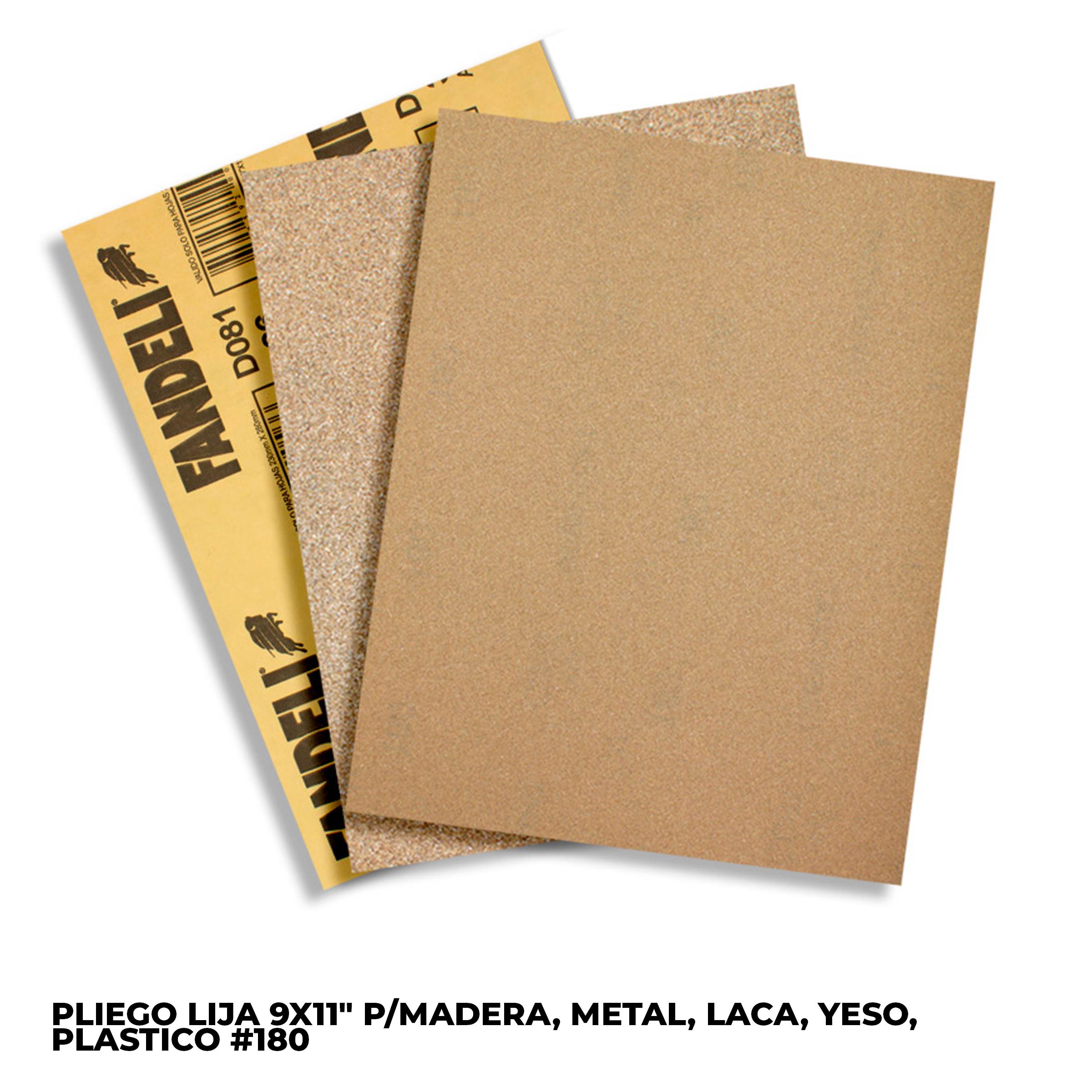 PLIEGO LIJA 9X11" P/MADERA, METAL, LACA, YESO, PLASTICO #180