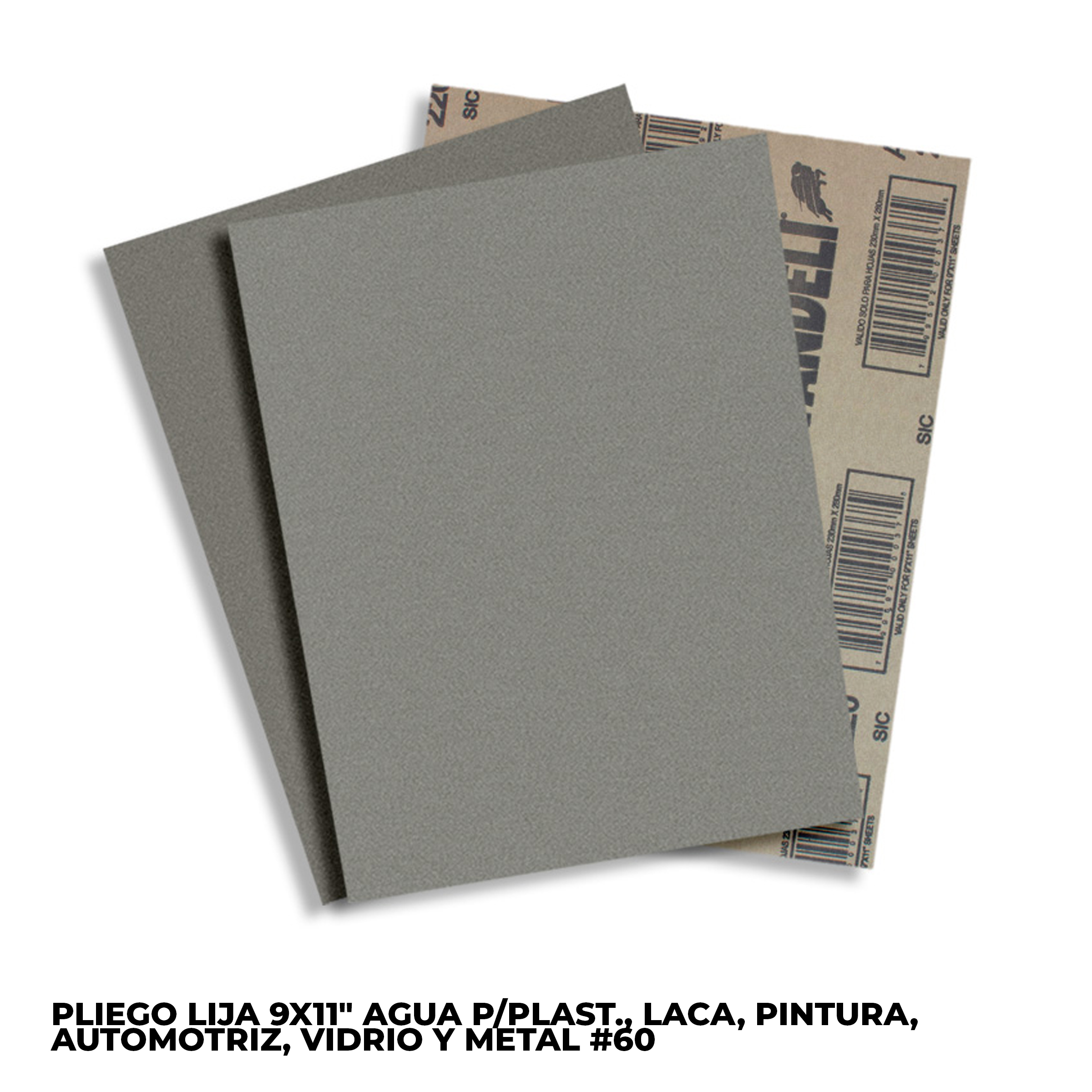 PLIEGO LIJA 9X11" AGUA P/PLAST., LACA, PINTURA, AUTOMOTRIZ, VIDRIO Y METAL #60