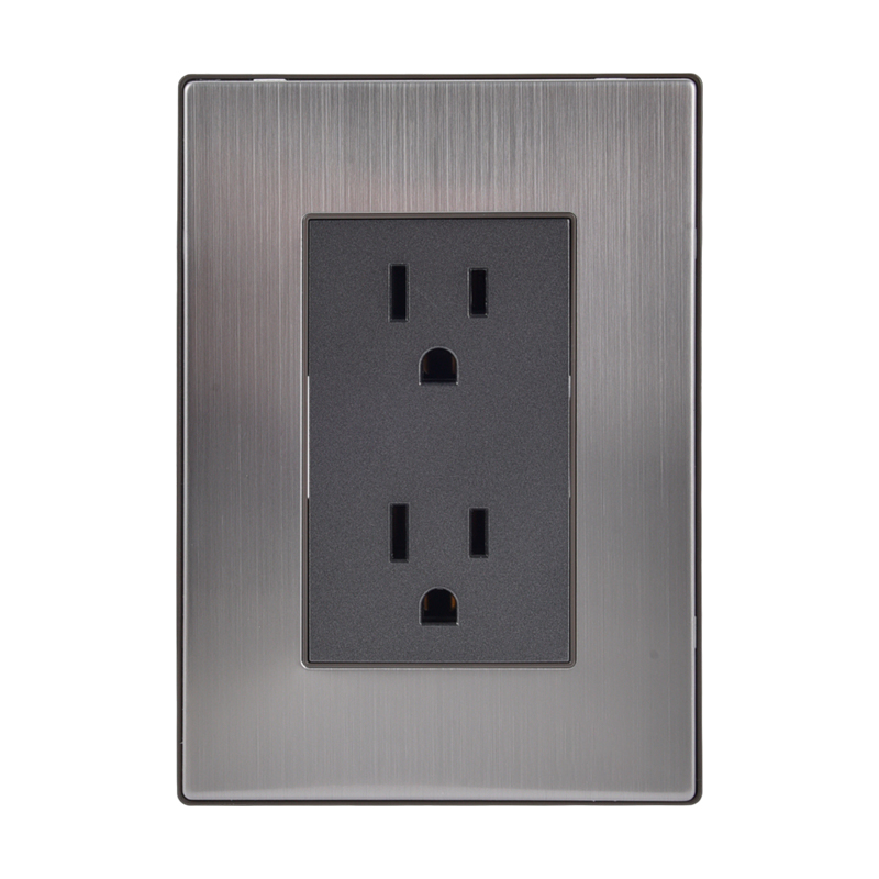 RECEPTACULO DOBLE C/TIERRA 15A-125V NEGRO METALICO PLATA
