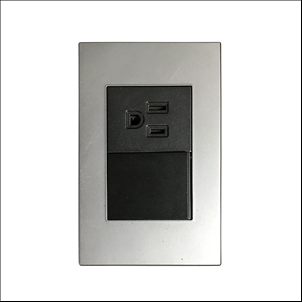 INTERRUPTOR+TOMA C/TIERRA 15A-125V NEGRO METALICO PLATA