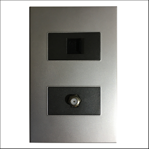 TOMA COAXIAL + TOMA TELEFONICA NEGRO METALICO PLATA