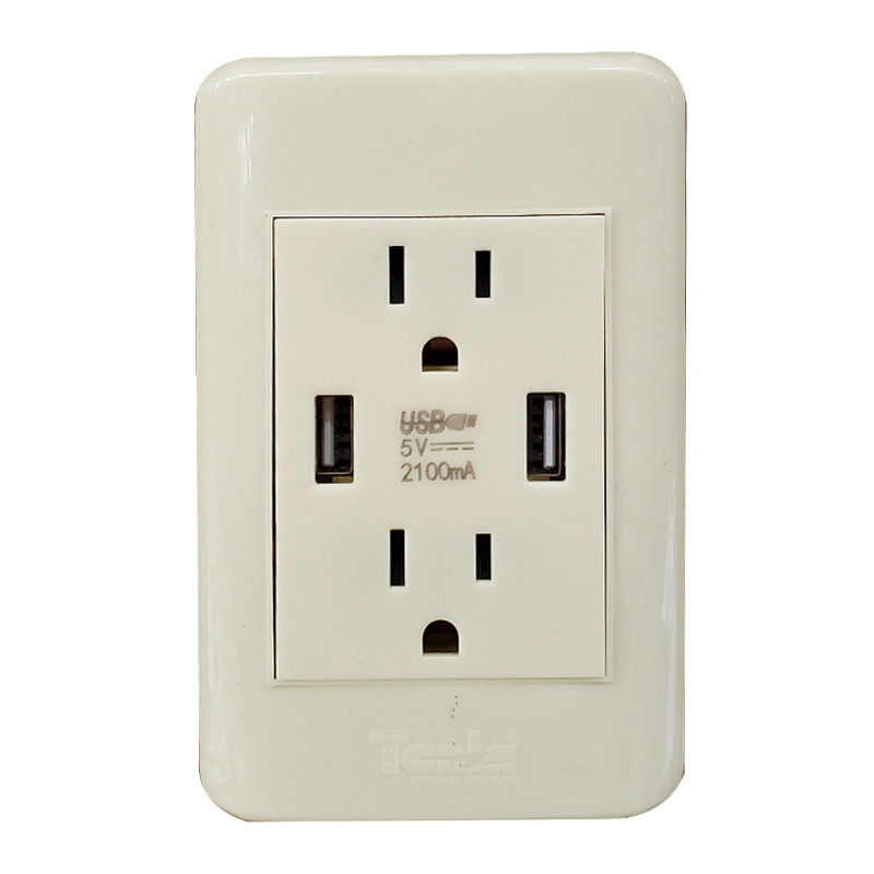 TOMA DOBLE POLARIZADO+TOMA DOBLE USB 2.1 AMP (MARFIL-DELUXE)