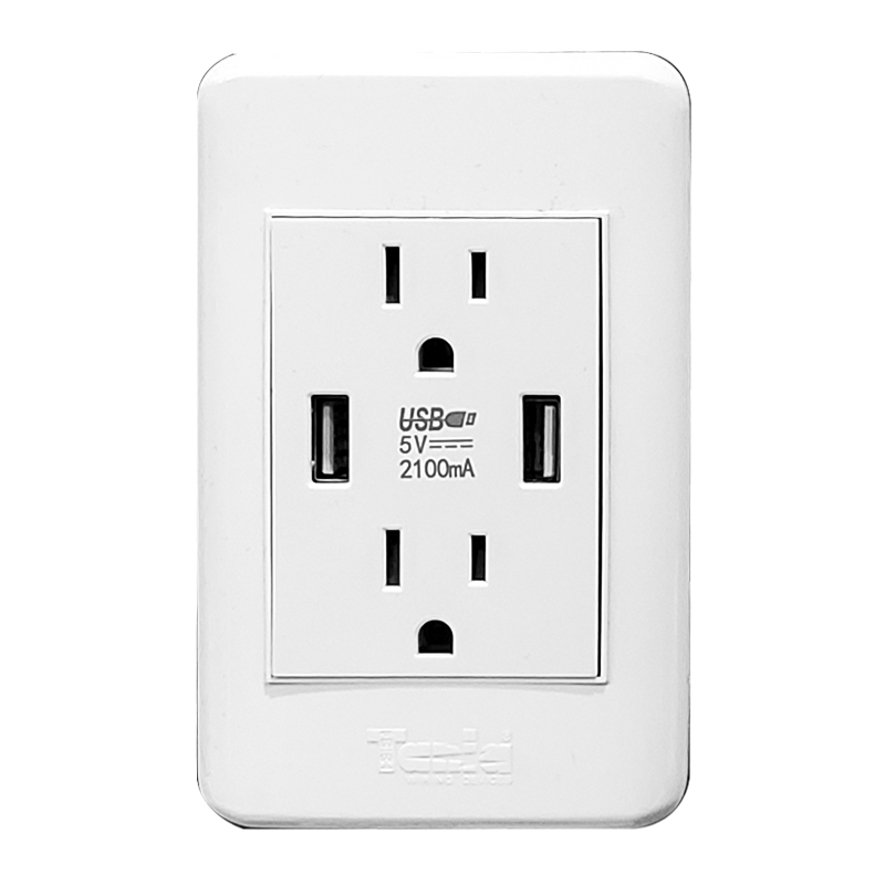 TOMA DOBLE POLARIZADO + TOMA DOBLE USB 2.1 AMP (BLANCO-DELUXE)