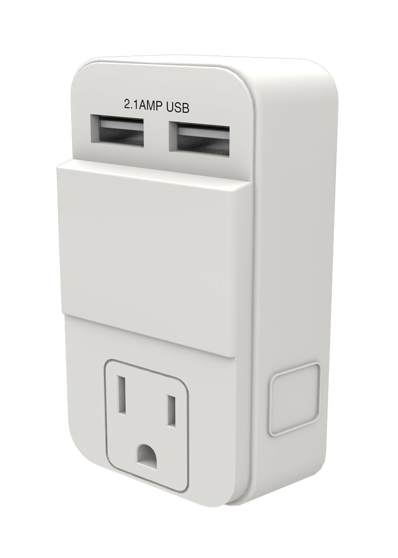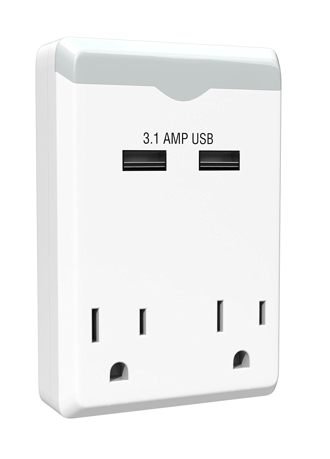 TOMACORRIENTE DOBLE CON DOBLE PUERTO USB 3.1A, LUZ DETECCION OSCURIDAD
