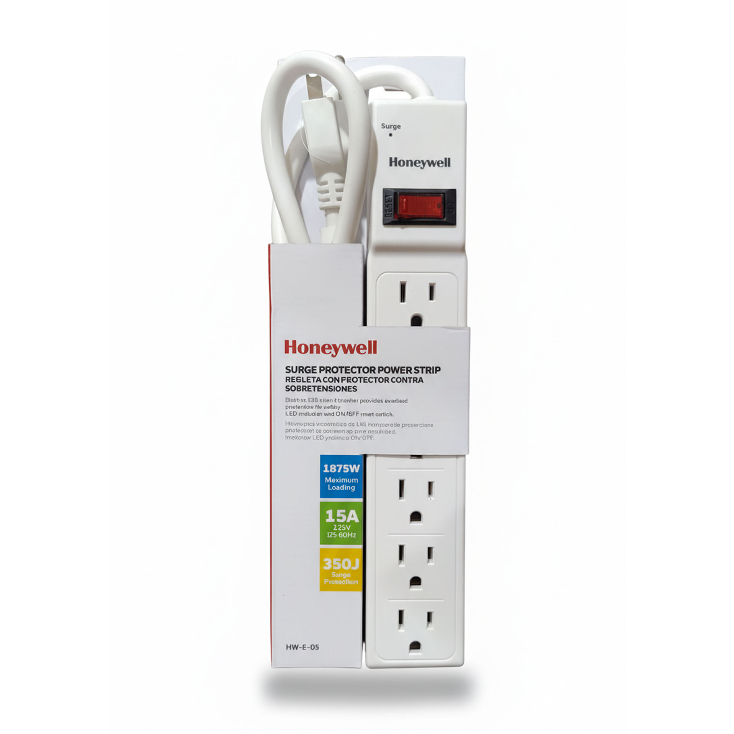 REGLETA PROTECTOR CORRIENTE 3 SALIDAS/2 USB BLANCO, 15A/125V/300 JOULES, HONEYWELL