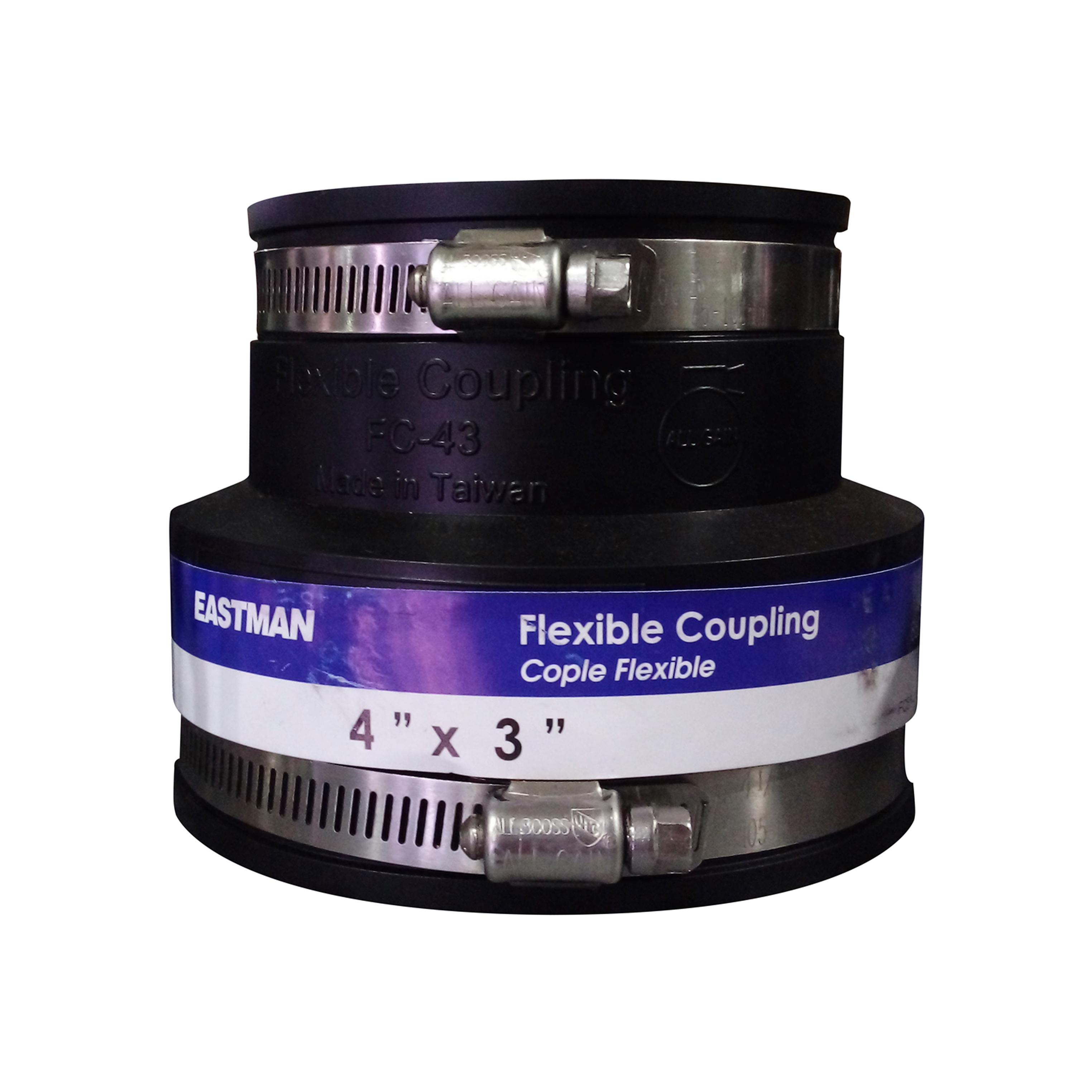 ACOPLE FLEXIBLE HULE 4"X3" CON ABRAZADERA ACERO INOX PARA REPARAR TUBERIA
