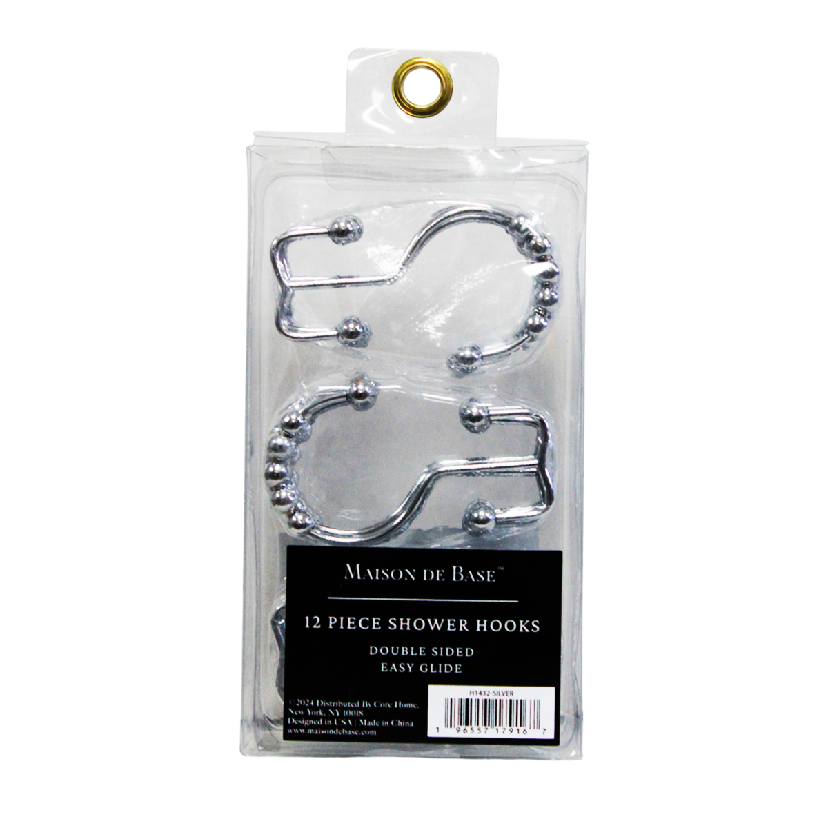 PAQ.12 GANCHOS METALICO DOBLE PARA CORTINA DE DUCHA C/DESLIZADORES , COLOR PLATEADO