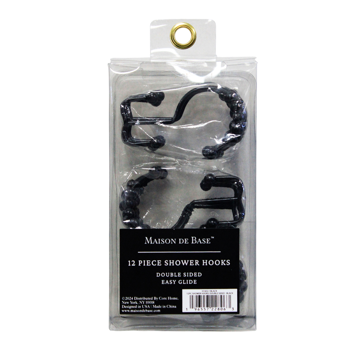 PAQ.12 GANCHOS METALICO DOBLE PARA CORTINA DE DUCHA C/DESLIZADORES , COLOR NEGRO